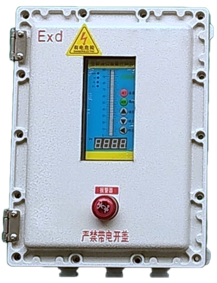 智能液位报警控制器将液位信息以数字形式在数码管上显示以及LED光柱百分比显示。当液位超过设定值时立即触发对应继电器动作,进行抽水/排水/报警等。金属防爆箱安装。