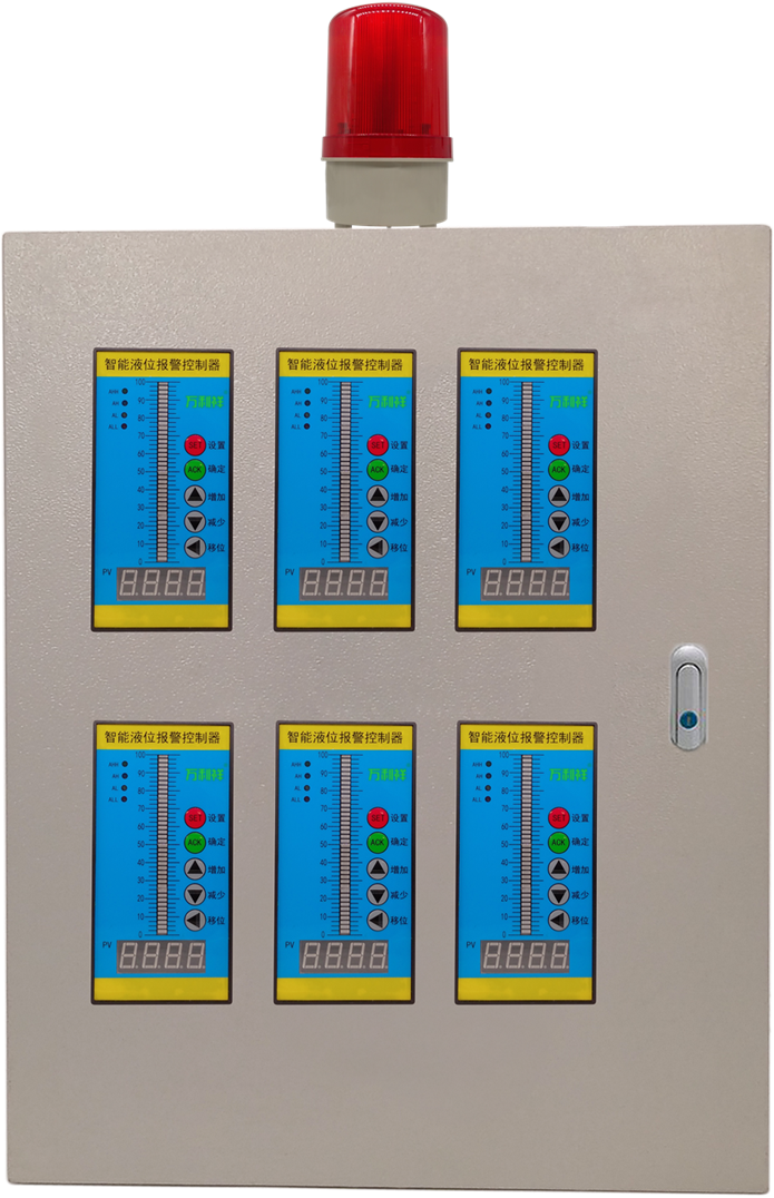 智能液位报警控制器将液位信息以数字形式在数码管上显示以及LED光柱百分比显示。当液位超过设定值时立即触发语音播报且对应继电器动作,进行抽水/排水/报警等。金属基业箱安装。