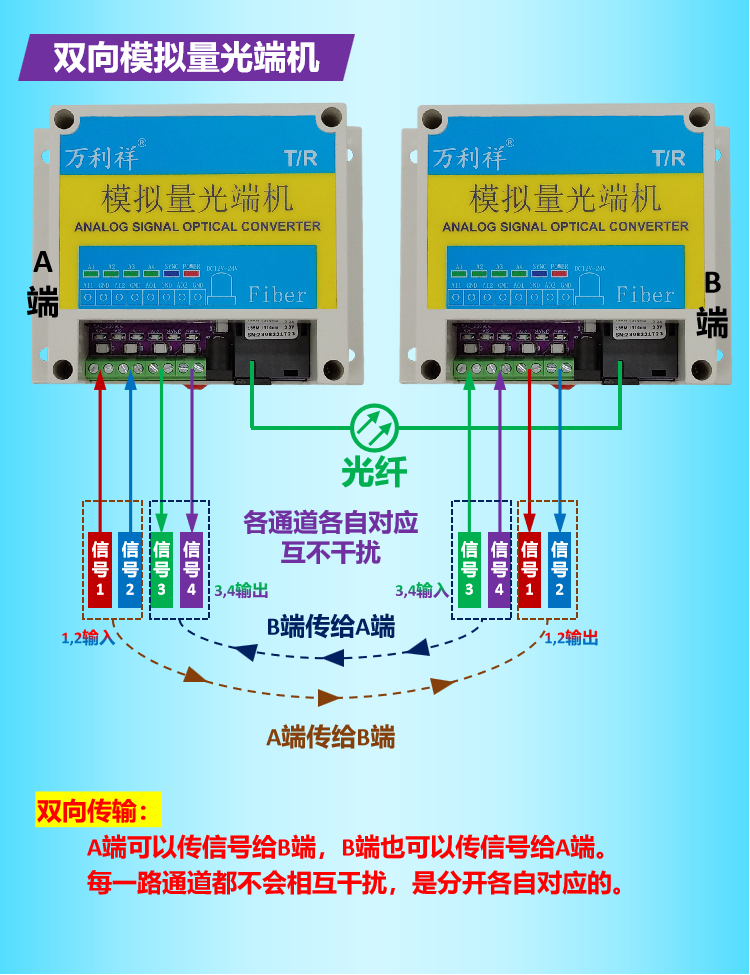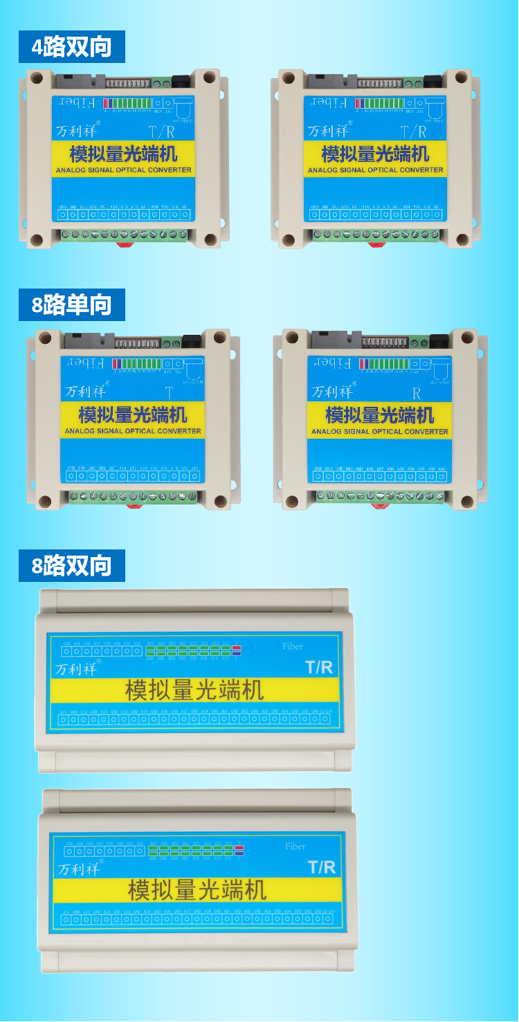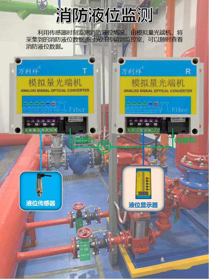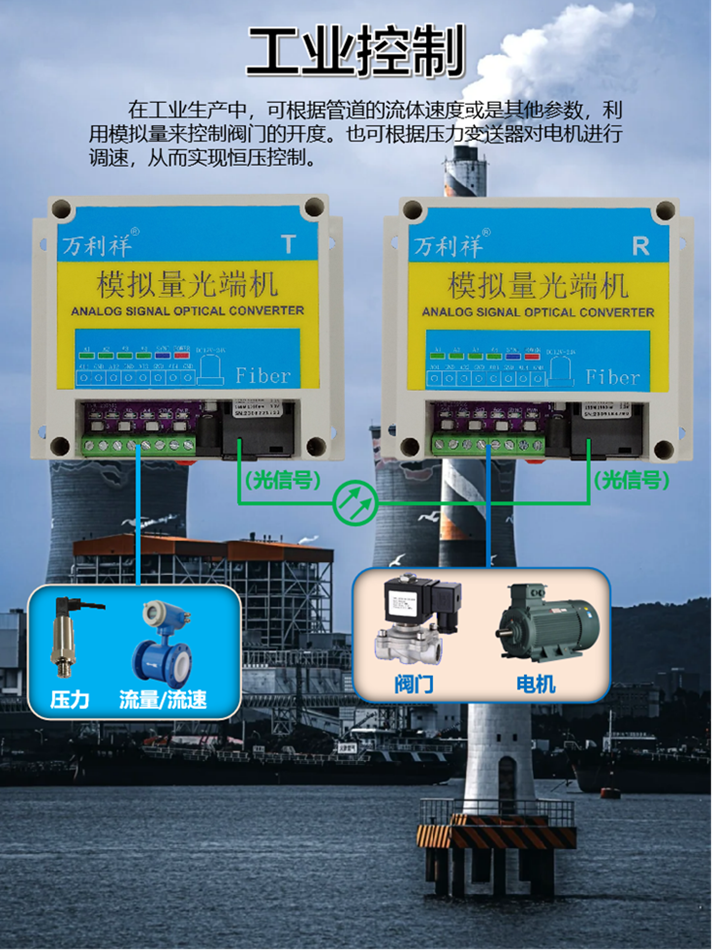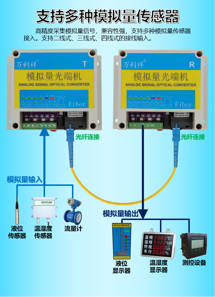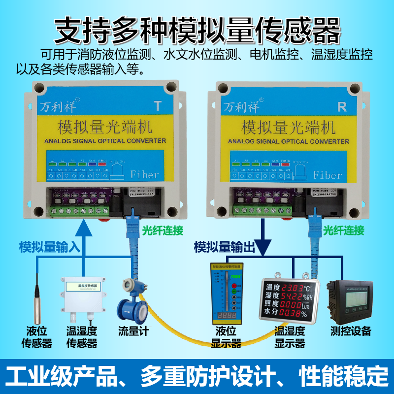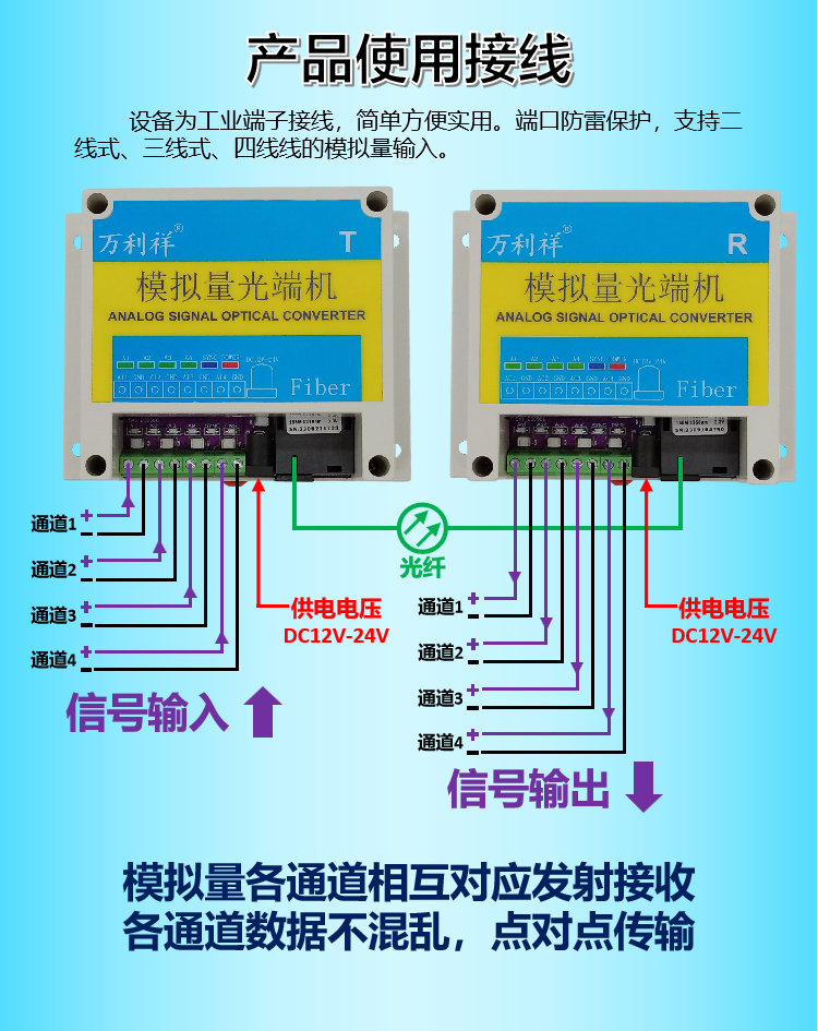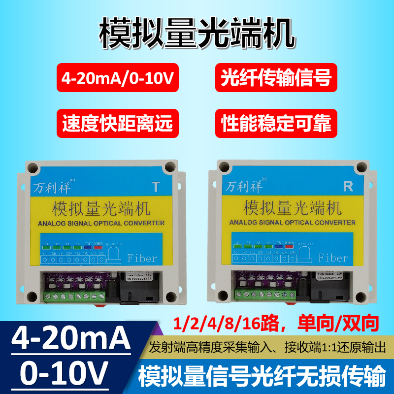 本套设备是由发射端和接收端组成的,发射端高精度采集模拟量信号,通过光纤无损远距离传输给接收端,接收端一比一还原输出模拟量信号。