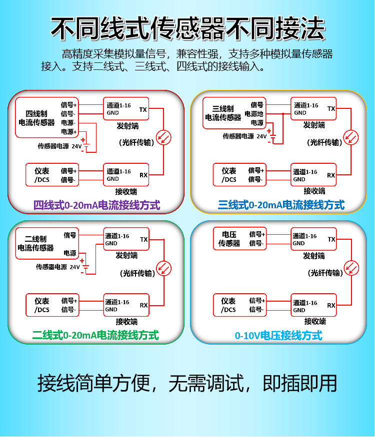 模拟量:4-20mA/0-10V 接口标准:两线式,三线式,四线式