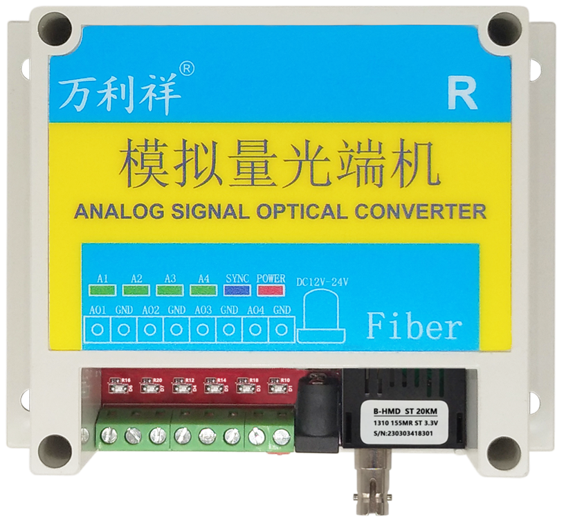 本套设备是由发射端和接收端组成的,发射端高精度采集模拟量信号,通过光纤无损远距离传输给接收端,接收端一比一还原输出模拟量信号。