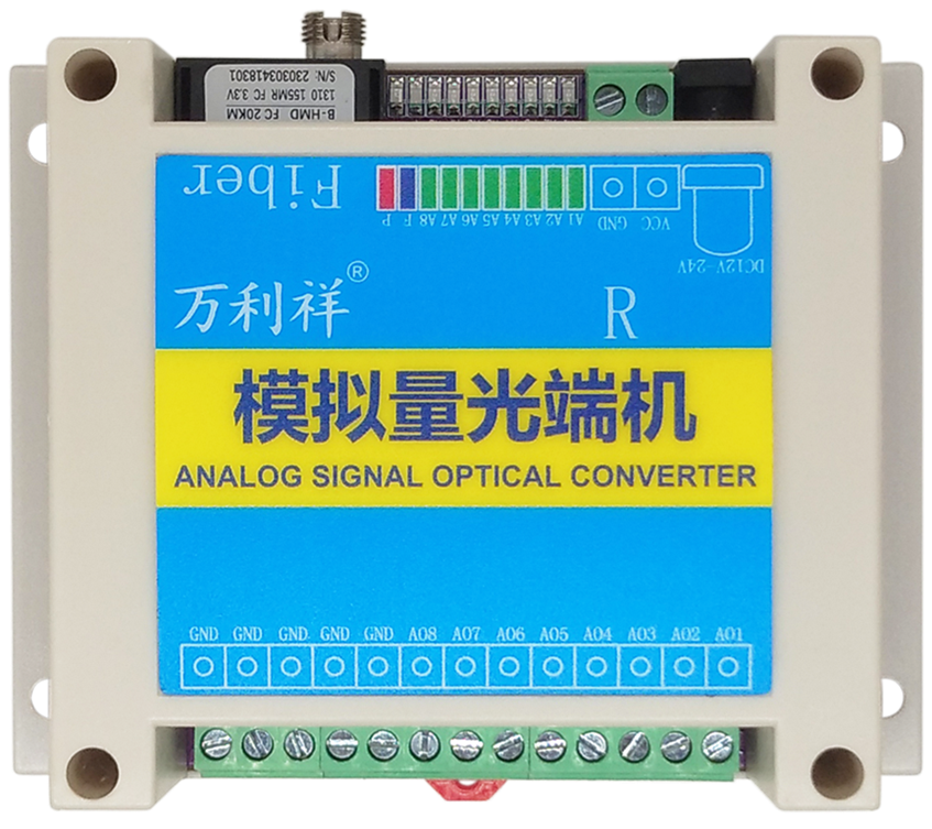 本套设备是由发射端和接收端组成的,发射端高精度采集模拟量信号,通过光纤无损远距离传输给接收端,接收端一比一还原输出模拟量信号。