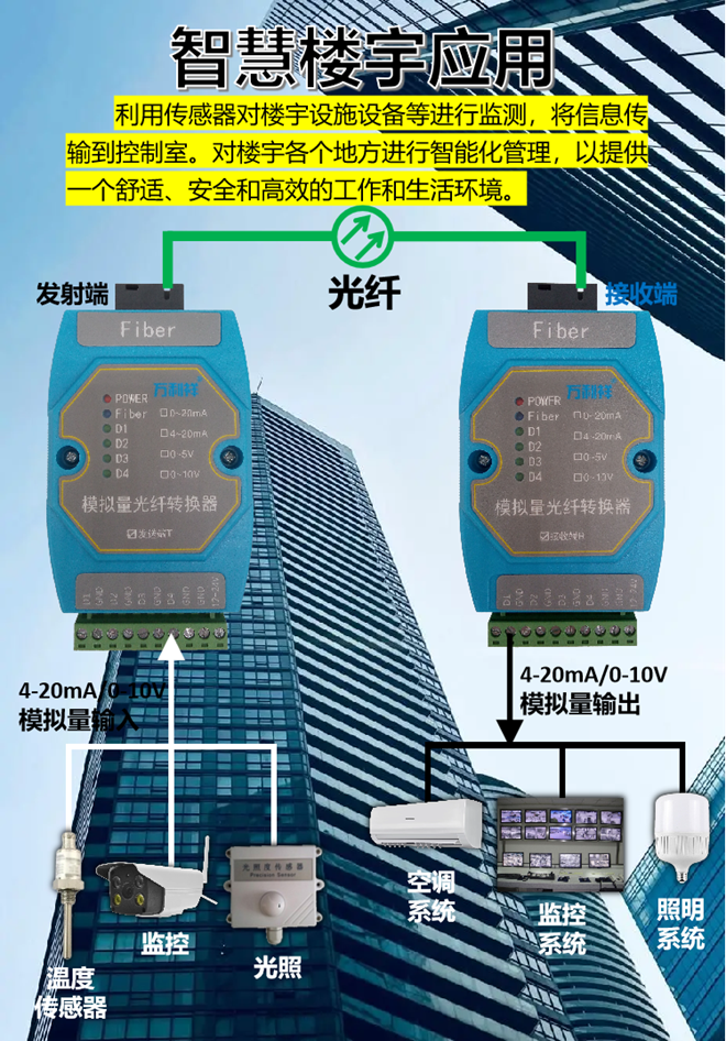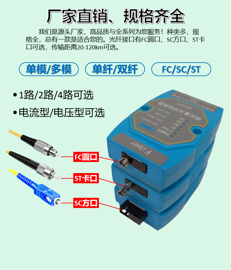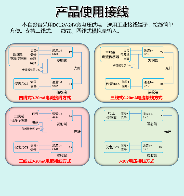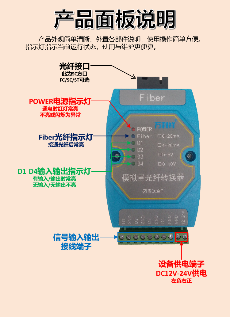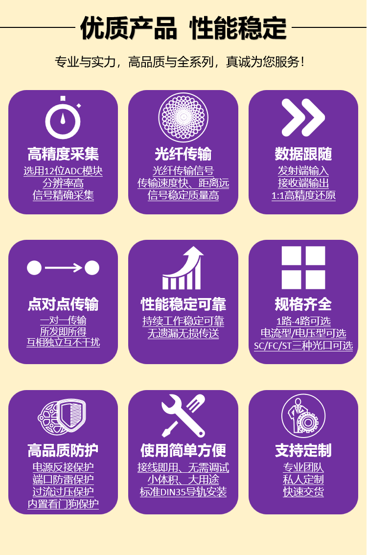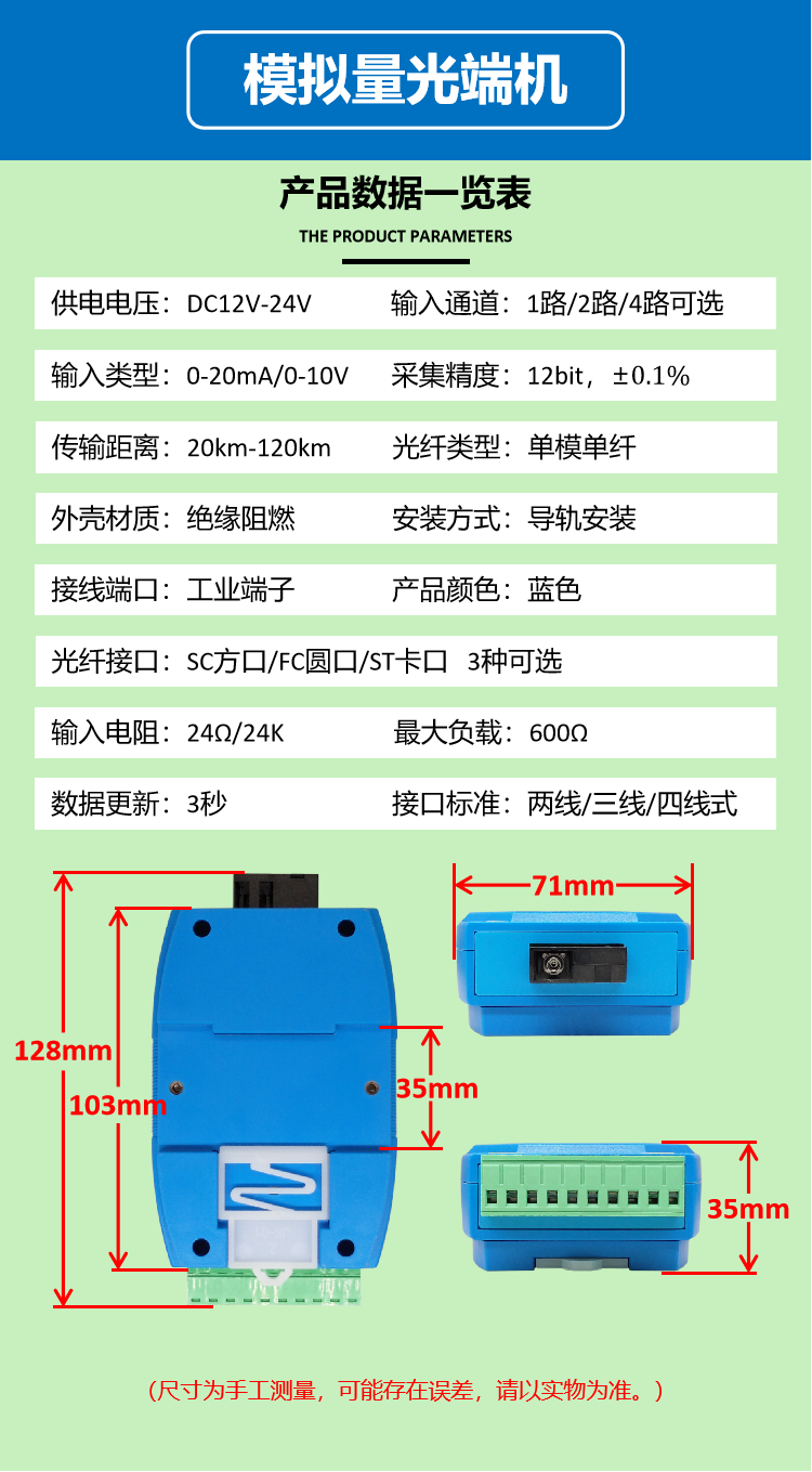 本套设备是由发射端和接收端组成的,发射端高精度采集模拟量信号,通过光纤无损远距离传输给接收端,接收端一比一还原输出模拟量信号。