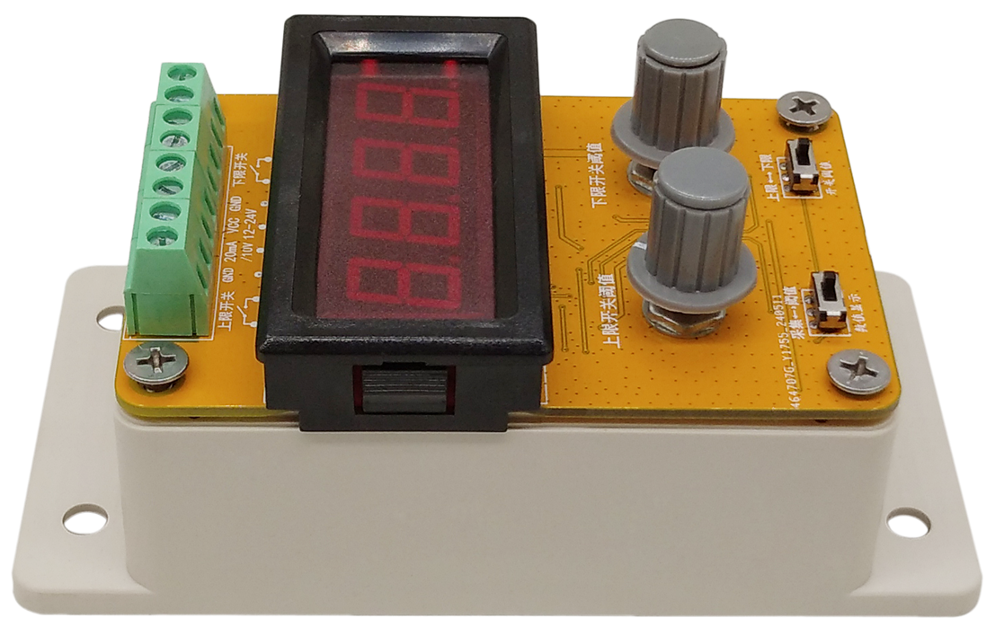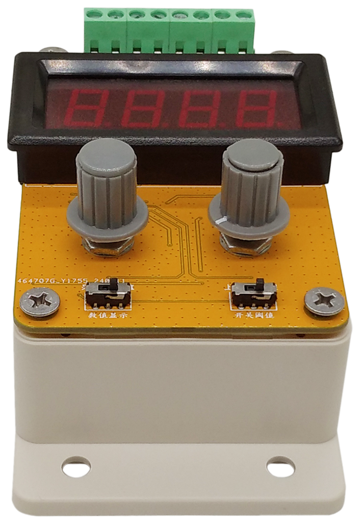 模拟量转开关量模块,当输入的模拟量大于或者小于设定的阈值时,输出端的开关就会闭合或者断开。可用旋钮设置阈值,带数码管显示,拨码开关切换输入值和设置阈值,拨码开关切换输入类型,支持0-20mA和0-10V模拟输入,继电器默认常开输出,最大负载可达10A。