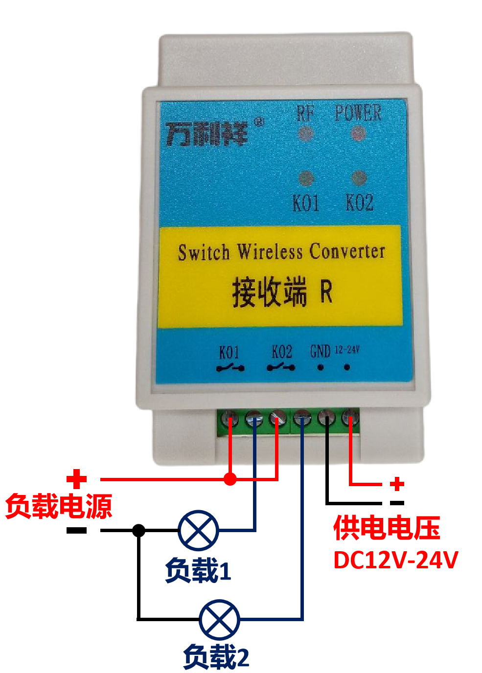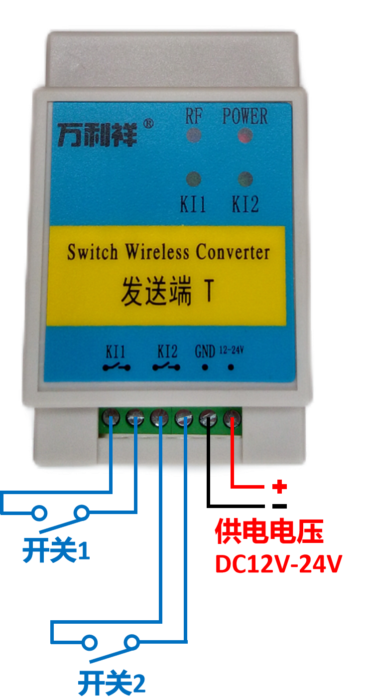 本套设备是由发射端和接收端组成的。发射端监测端口开关状态,将开关信号通过无线的方式传输到接收端;接收端收到信号后响应对应的动作。发射端开关闭合,接收端开关也闭合。开关无线远程同步。