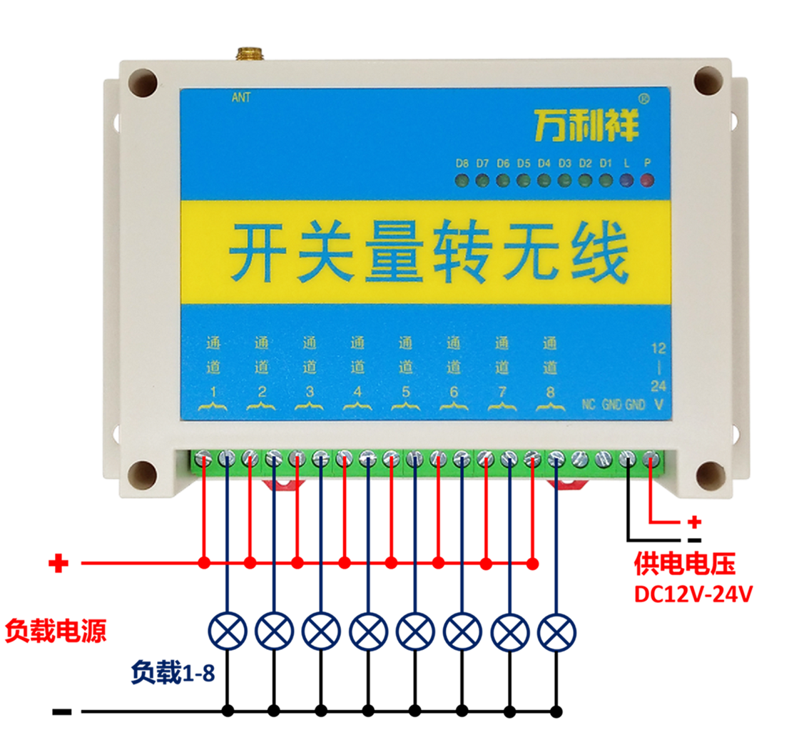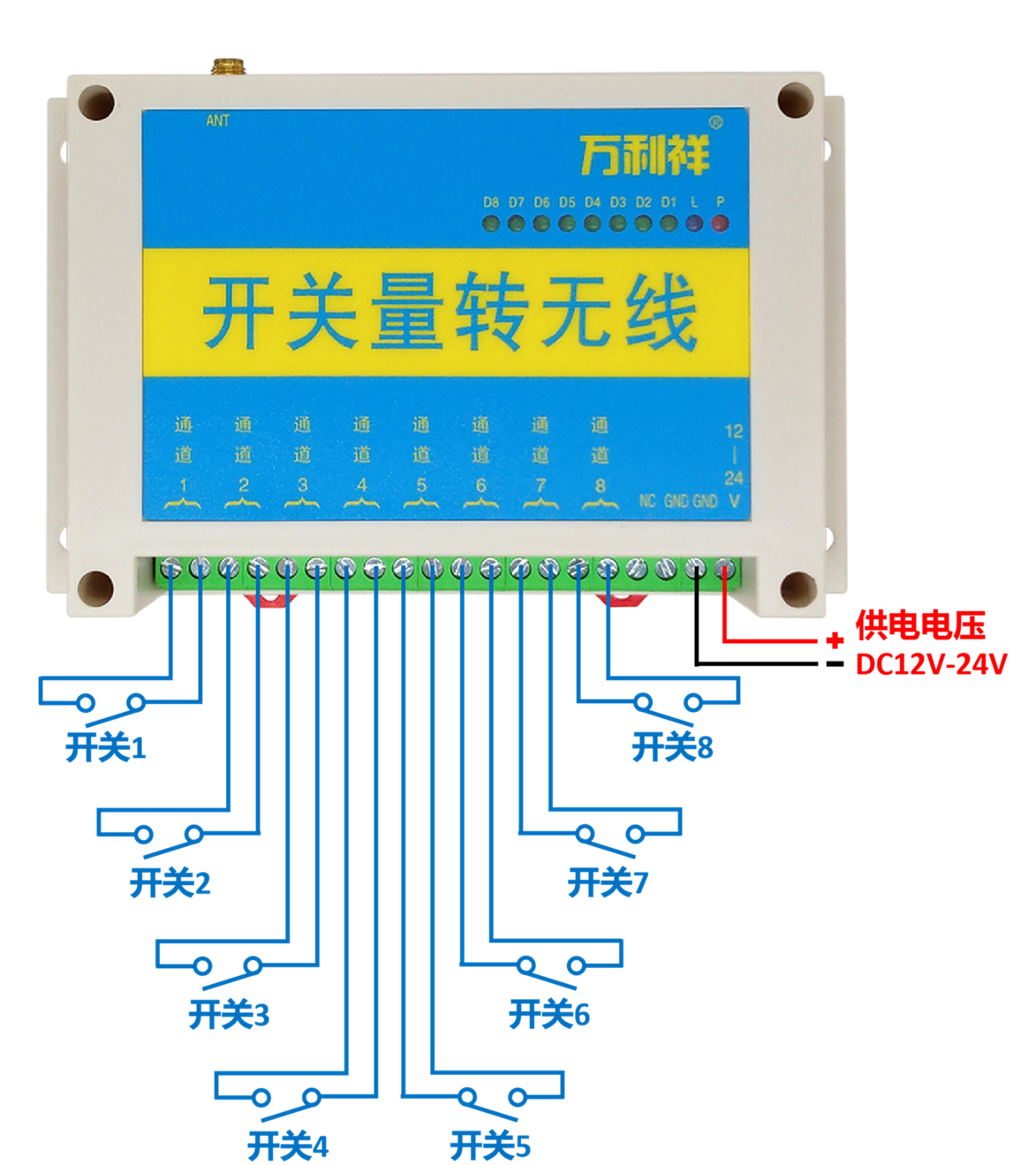 本套设备是由发射端和接收端组成的。发射端监测端口开关状态,将开关信号通过无线的方式传输到接收端;接收端收到信号后响应对应的动作。发射端开关闭合,接收端开关也闭合。开关无线远程同步。