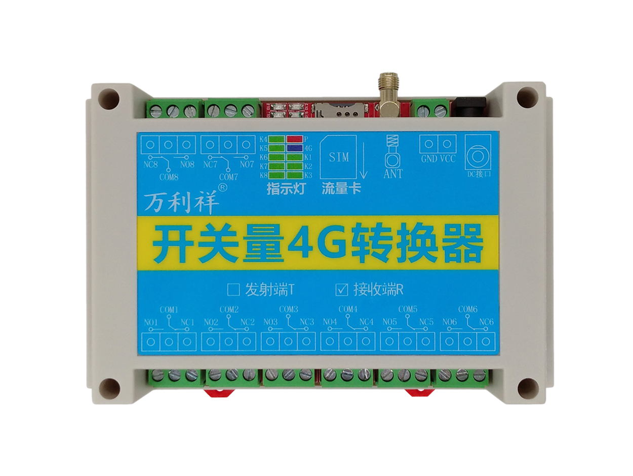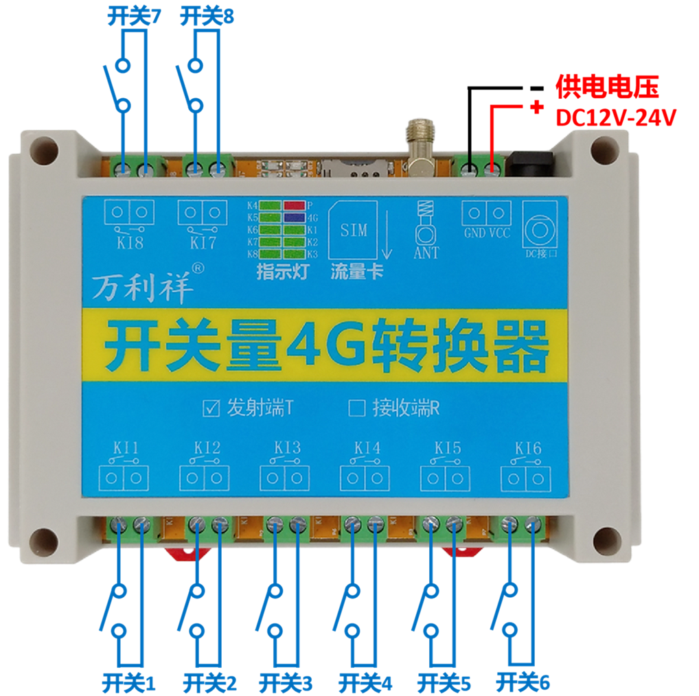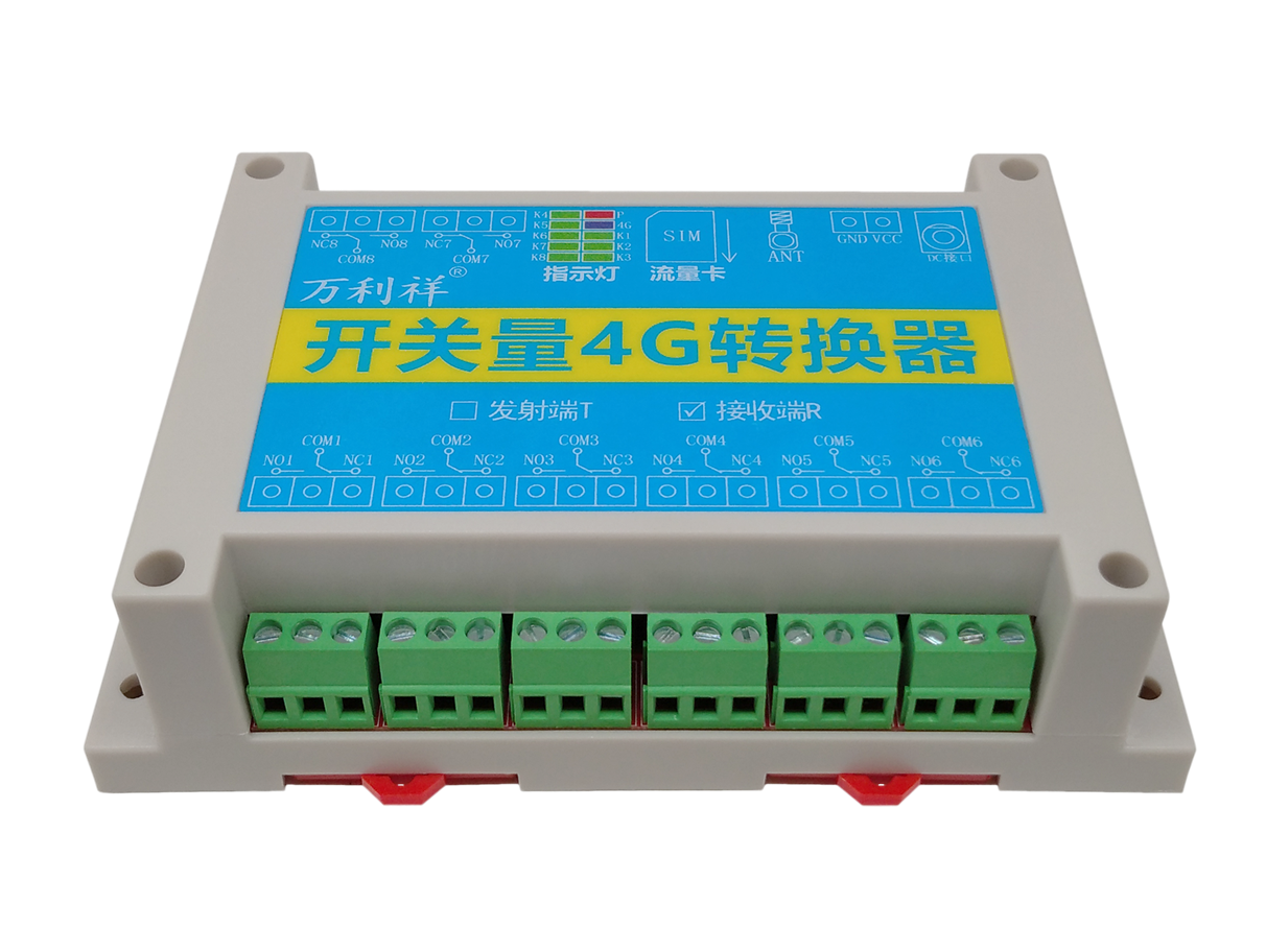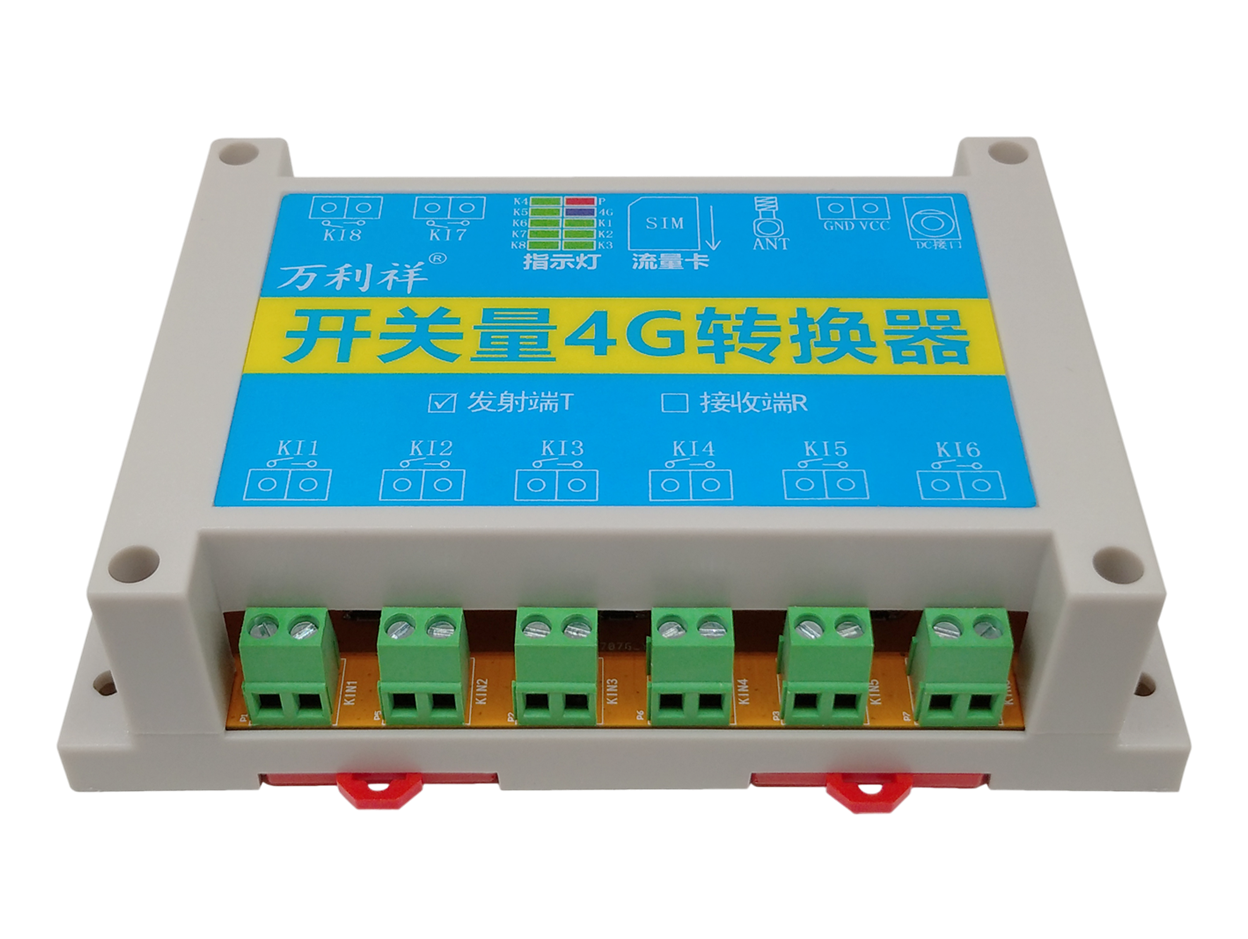 开关4G无线转换器是一种“现场开关信号采集---网络服务器---远端继电器开关状态还原输出”的远距离透明传输设备分为发射机和接收机,成对使用发射机将现场的开关信号采集处理,并通过4G网络上传至服务器远端接收机通过4G网络与服务器交互,把数据还原对应发射机通道的开关状态无线传输采用4G联网方式只要能上网的地方,就可以使用不限距离,可广泛应用于现场需要开关信号远距离传输的场合
