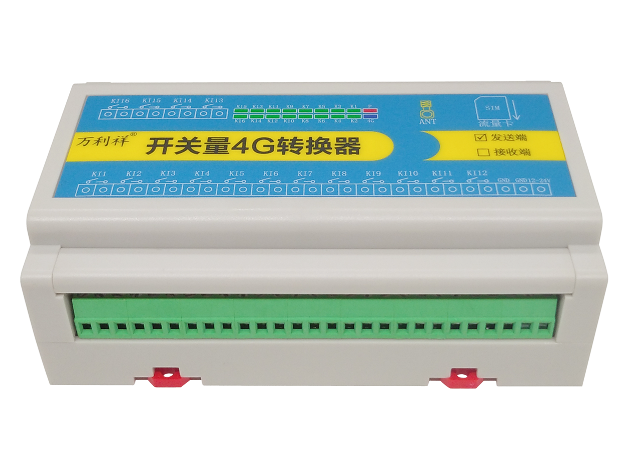 开关4G无线转换器是一种“现场开关信号采集---网络服务器---远端继电器开关状态还原输出”的远距离透明传输设备分为发射机和接收机,成对使用发射机将现场的开关信号采集处理,并通过4G网络上传至服务器远端接收机通过4G网络与服务器交互,把数据还原对应发射机通道的开关状态无线传输采用4G联网方式只要能上网的地方,就可以使用不限距离,可广泛应用于现场需要开关信号远距离传输的场合