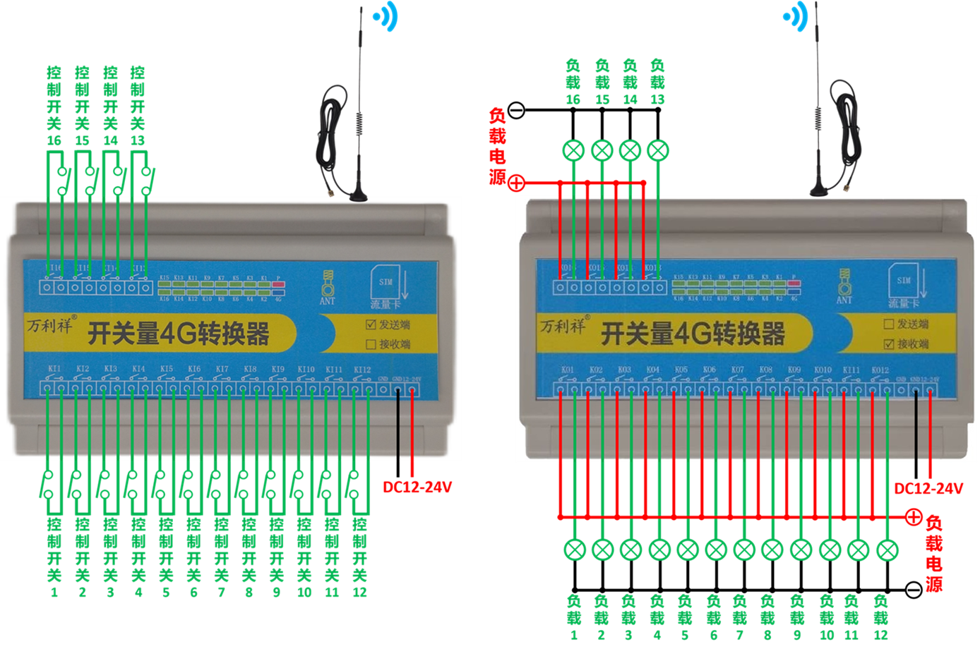 本套设备是由发射端和接收端组成的。发射端监测端口开关状态,将开关信号通过4G无线的方式传输到接收端;接收端收到信号后响应对应的动作。发射端开关闭合,接收端开关也闭合。开关4G无线远程同步。不限使用距离,两端有信号就能使用。
